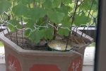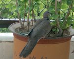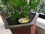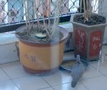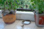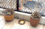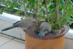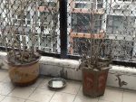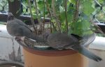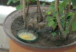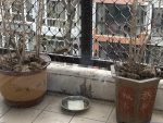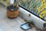 Over the years I changed the way they can eat. I installed some wire in one pot so the doves and sparrows don’t fight to much – the doves can’t land because of the wire.