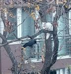 Our compound has many cats, being fed daily by some ladies. See this one, climbed way high and was watching the crows. Or the crows watching the cat…