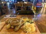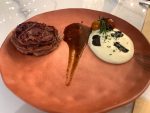 The dishes: crab salmon, foie gras, beef Wellington, bouillabaisse, Ile flottante, apple tart plus a couple of IPA. The bouillabaisse was a joke and the Wellington was (for me at least) a weird version.