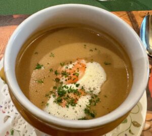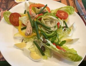 - Russian eggs salad OR salade Niçoise OR fresh daily soup (lobster soup or vegetable soup)