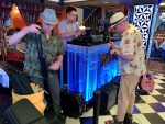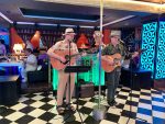 I could organize the floor for our two musician friends. Great performance by Kevin and Brian, real professionals. It took some work to get them wired but they brought most of the equipment so, all went perfect. They got an extra pizza to reward them.