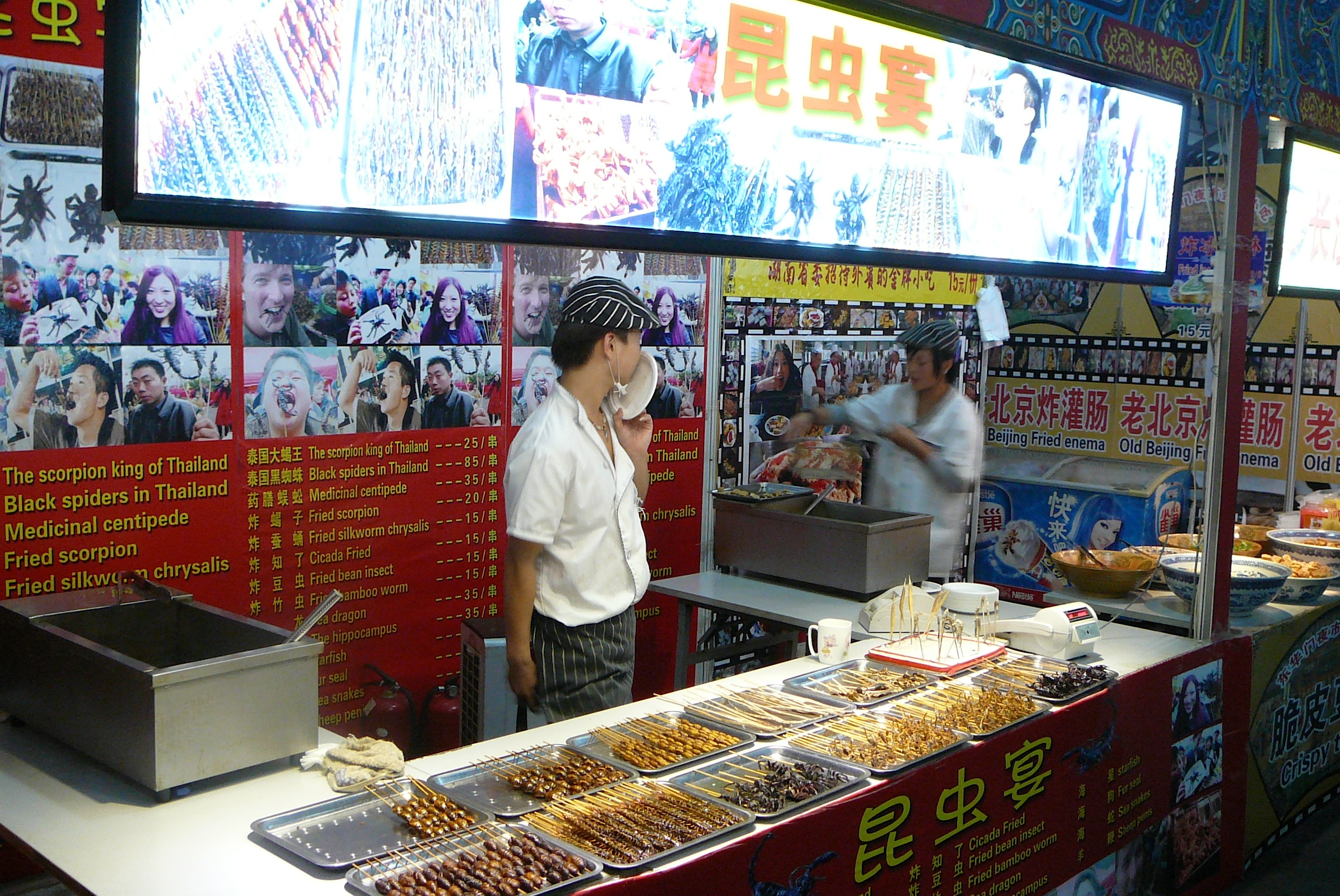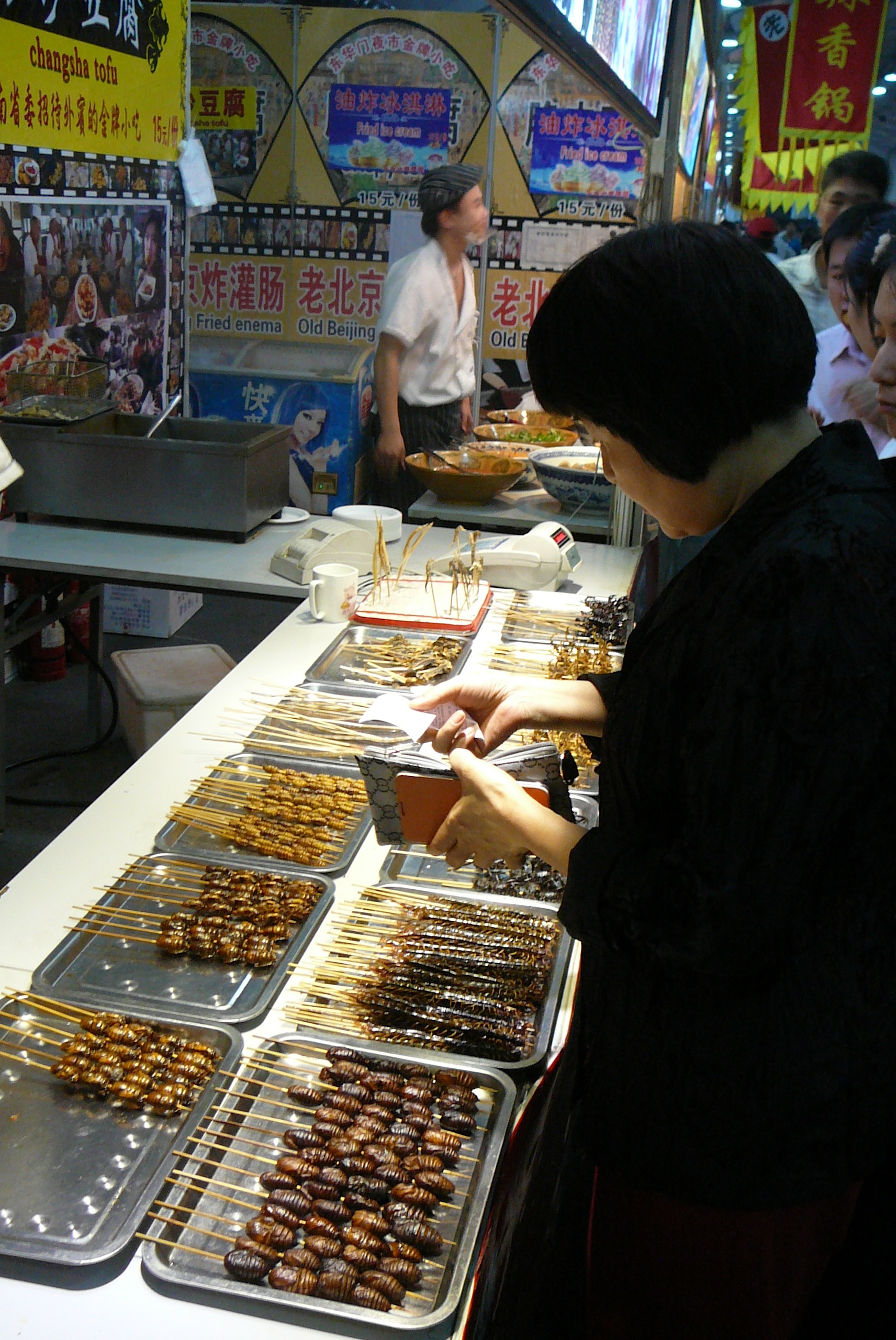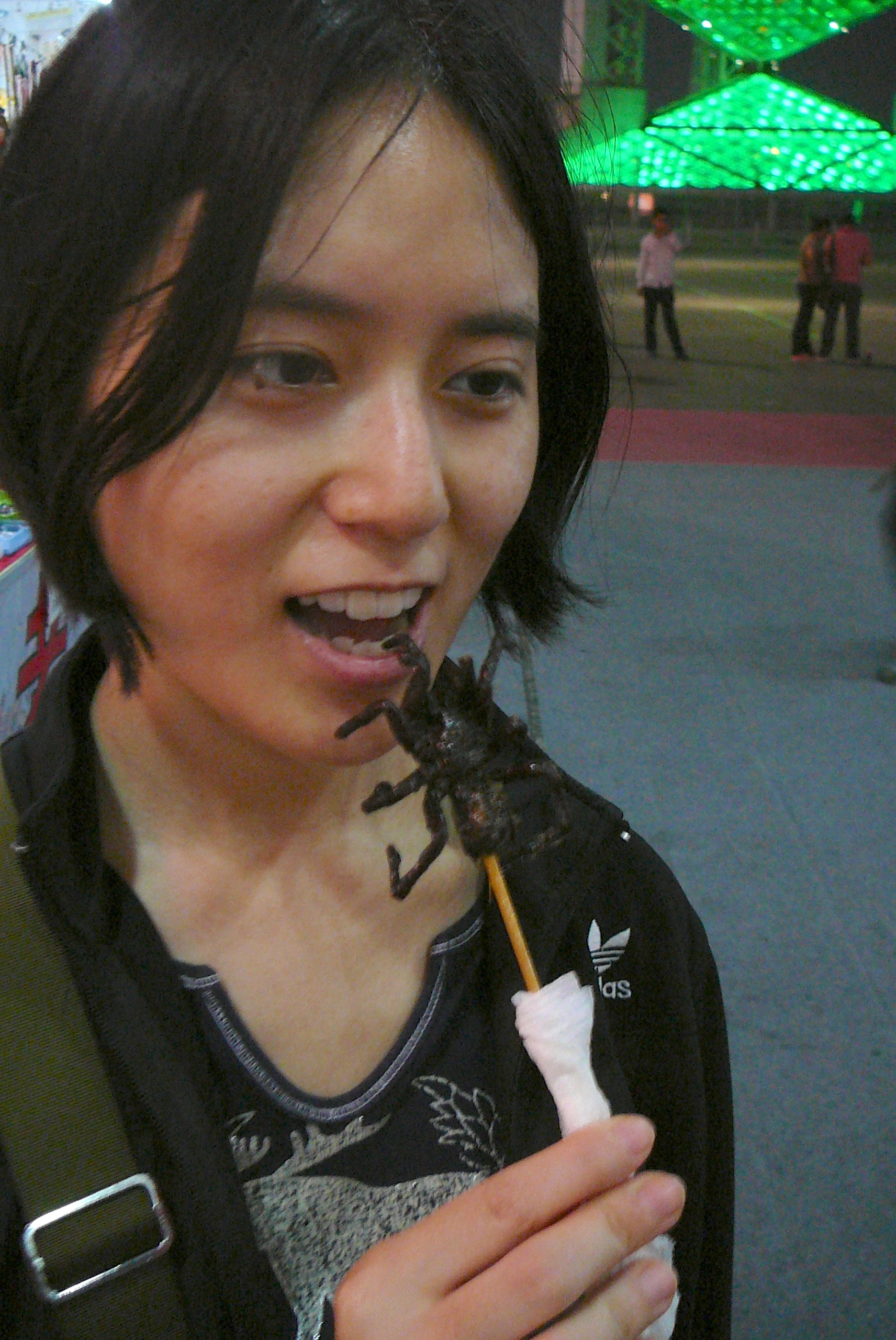 Before heading to the show in the Bird’s Nest (21 September) we walked around a bit in the Olympic Green. A lot has changed, let’s say improved, as there are many more attractions, especially food outlets. We tried one and Valerie volunteered to be the one to eat a crispy bit spider – I declined.