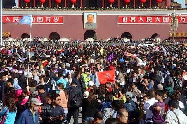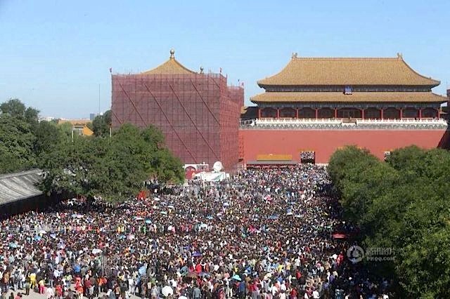 Some views showing the huge crowds visiting Tiananmen, The Forbidden City and other typical attractions. Several subway stations remained closed, supposed to be for crowd control, forcing visitors to walk one station far to reach Tiananmen, the Zoo and other.