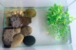 At the beginning the tiny one liked my shrimp and some salad. But gradually it stopped eating. I tried to have the right water, some light to warm up, but the poor little thing died (slowly).