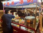 Dasha and others wanted to taste the typical desert that was served by a street vendor, called “baobing”, made of shaved ice. The topping is made from fruit and condensed milk. Traditionally, you’ll find fruit like mango, strawberry, lychee, and coconut on baobing, as well as sweet red beans. Many vendors will lay out a huge spread of toppings, so customers can choose whatever they like, see the picture.