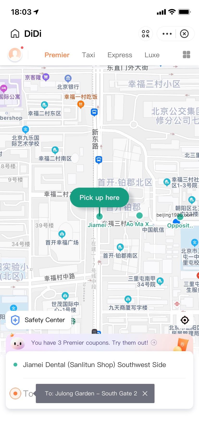 – through WeChat: also a bit complicated to find it and to navigate when using it. Again without the easy use of the original English Didi app. (screenshots added 21 Feb 21)