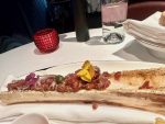 We were really spoiled with a great red after some sparkling wine. And a stream of dishes with no end.
