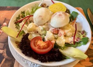 - Russian eggs salad OR salade Niçoise OR fresh daily soup (lobster soup or vegetable soup)