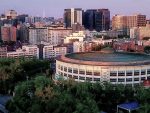 In this design sketch, the concert hall is right on the left of the new stadium. The view shown is from the north-east corner of the gongti area.