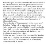 Another key event was on 20 August 2019 when I attended the launch of the movie featuring Isabel Crook, in The Bookworm, with a performance by Mark Levine. Fu Han did a remarkable job!